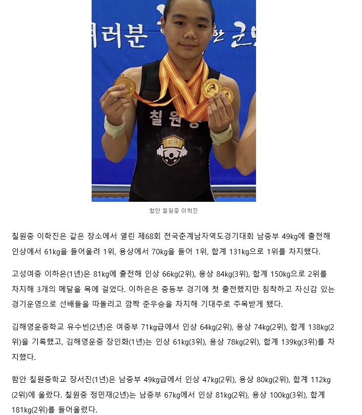고성여중 이하영·함안 칠원중 이학진, 3관왕 ‘번쩍’