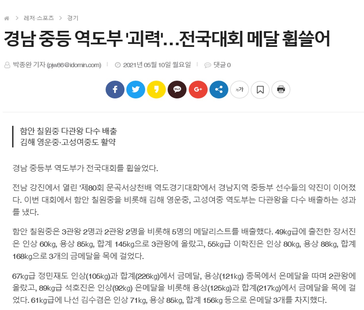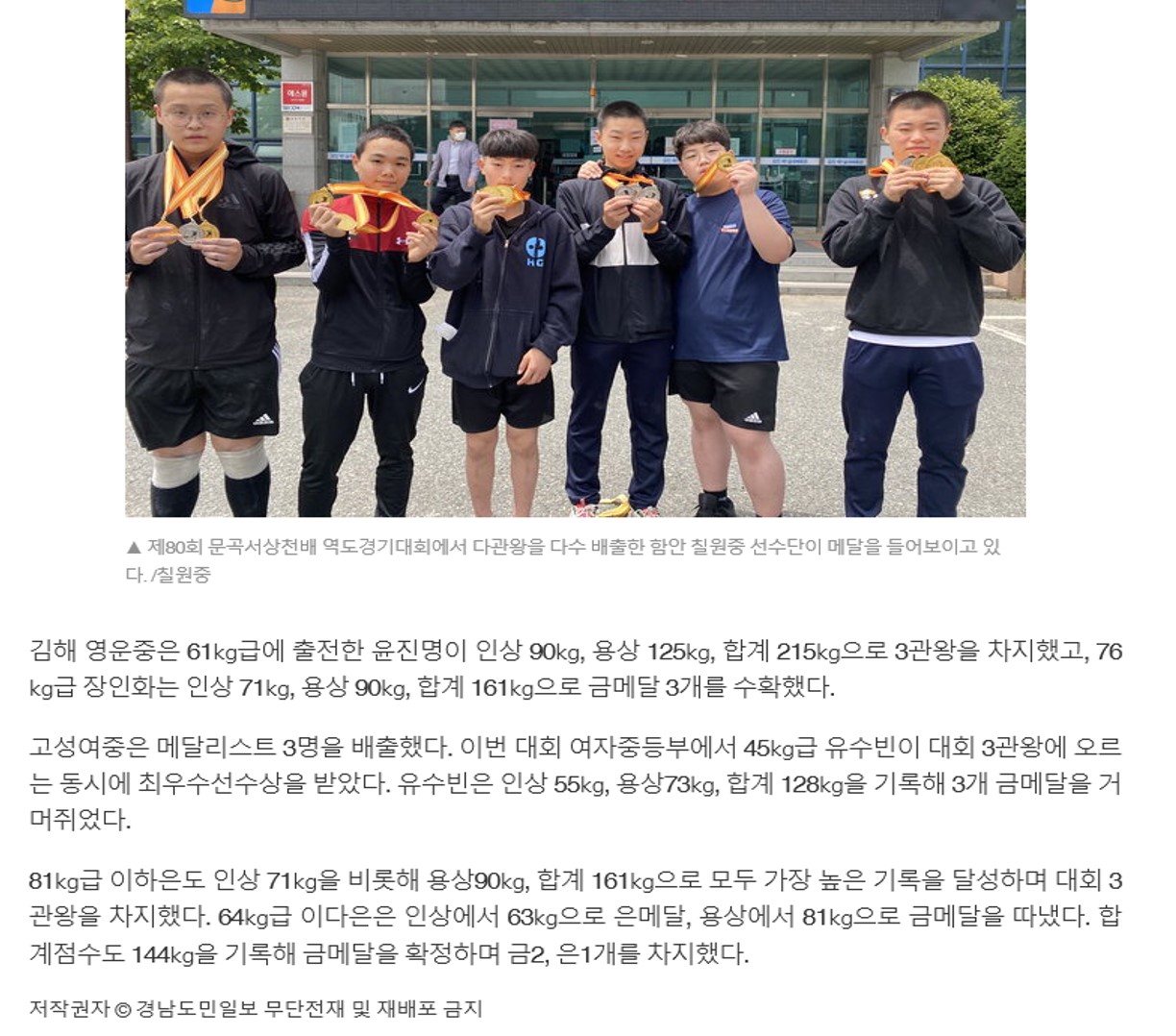 '경남 중등 역도부 '괴력'…전국대회 메달 휩쓸어'